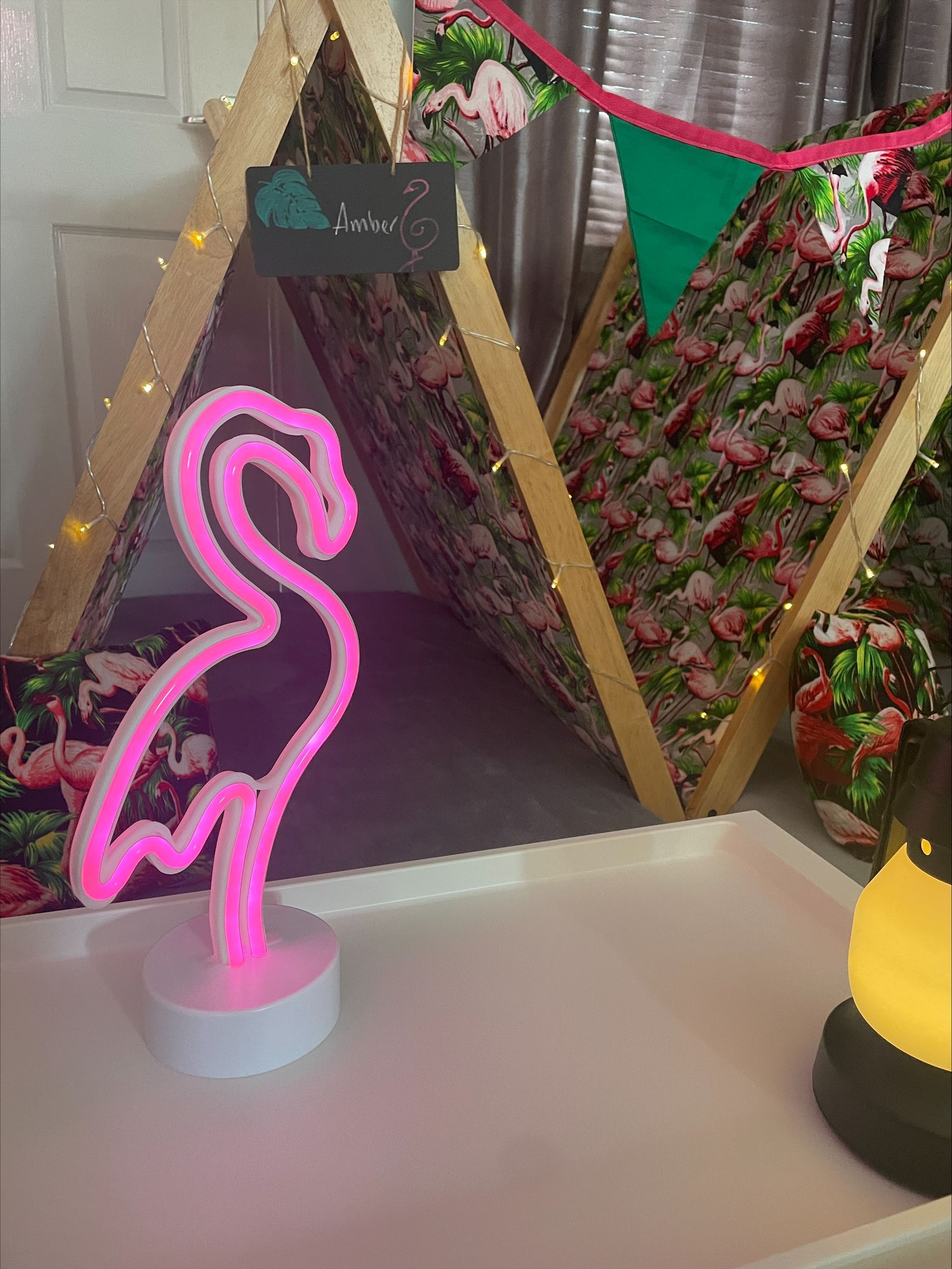 It's Flamingo time! Includes flamingo and pink tent covers, bedding, lanterns, breakfast trays, pink and green rugs, lots of flamingo accessories and of course a cuddly flamingo!